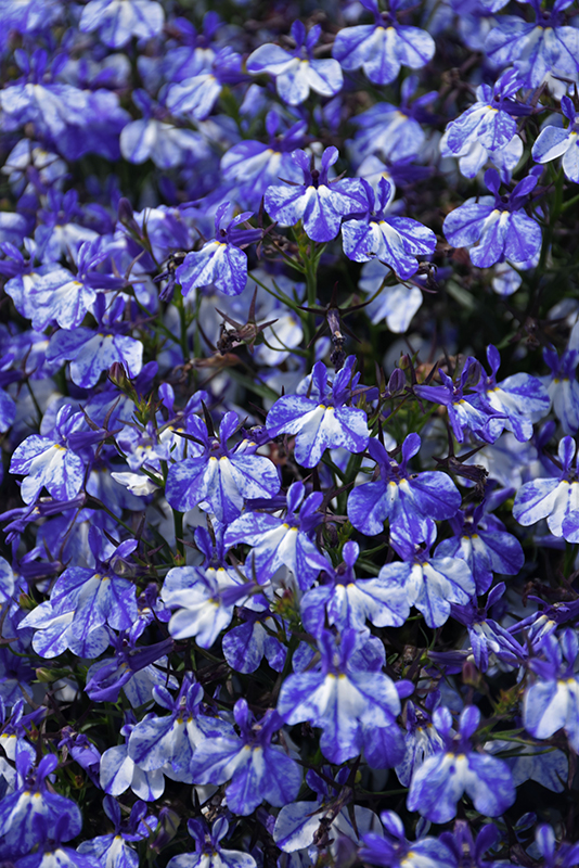 Rift Blue Lobelia will grow to be about 8 inches tall at maturity extending to 12 inches tall with the flowers, with a spread of 8 inches. When grown in masses or used as a bedding plant, individual plants should be spaced approximately 8 inches apart. Its foliage tends to remain low and dense right to the ground. Although it's not a true annual, this fast-growing plant can be expected to behave as an annual in our climate if left outdoors over the winter, usually needing replacement the following year. As such, gardeners should take into consideration that it will perform differently than it would in its native habitat.