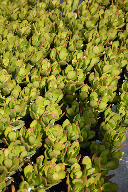 Medium Jade Plant features showy clusters of white star-shaped flowers with pink overtones at the ends of the branches in late winter. The flowers are excellent for cutting. It has attractive dark green foliage edged in ruby-red which emerges light green in spring. The succulent round leaves are highly ornamental and remain dark green throughout the winter.