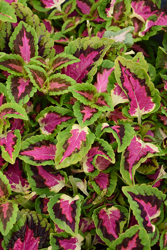 French Quarter Coleus' attractive crinkled pointy leaves emerge pink in spring, turning burgundy in colour with distinctive chartreuse edges the rest of the year on a plant with an upright spreading habit of growth.