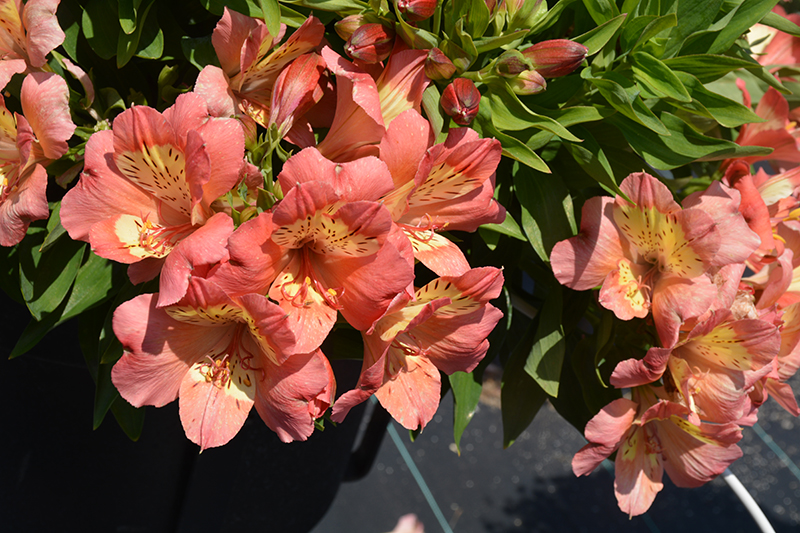 Valley Girl Alstroemeria will grow to be about 18 inches tall at maturity extending to 24 inches tall with the flowers, with a spread of 24 inches. When grown in masses or used as a bedding plant, individual plants should be spaced approximately 18 inches apart. Although it's not a true annual, this plant can be expected to behave as an annual in our climate if left outdoors over the winter, usually needing replacement the following year. As such, gardeners should take into consideration that it will perform differently than it would in its native habitat.