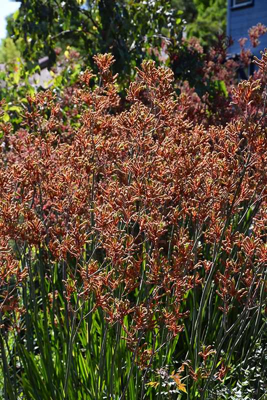 Bush Blitz Kangaroo Paw features unusual racemes of burgundy flowers with orange overtones rising above the foliage from late spring to mid fall. The flowers are excellent for cutting. Its sword-like leaves remain green in colour throughout the year.
