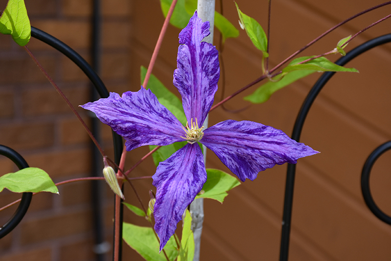 Tie Dye Clematis makes a fine choice for the outdoor landscape, but it is also well-suited for use in outdoor pots and containers. Because of its spreading habit of growth, it is ideally suited for use as a 'spiller' in the 'spiller-thriller-filler' container combination; plant it near the edges where it can spill gracefully over the pot. It is even sizeable enough that it can be grown alone in a suitable container. Note that when grown in a container, it may not perform exactly as indicated on the tag - this is to be expected. Also note that when growing plants in outdoor containers and baskets, they may require more frequent waterings than they would in the yard or garden. Be aware that in our climate, most plants cannot be expected to survive the winter if left in containers outdoors, and this plant is no exception. Contact our experts for more information on how to protect it over the winter months.