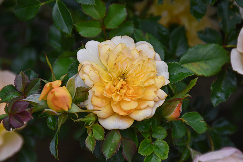 Itsy Bitsy® Peach Rose features showy double peach flowers with yellow overtones at the ends of the branches from late spring to early fall, which emerge from distinctive orange flower buds. The flowers are excellent for cutting. It has dark green deciduous foliage which emerges light green in spring. The glossy oval compound leaves do not develop any appreciable fall colour.