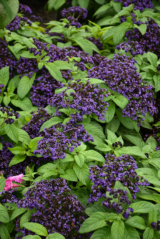 Aromagica® Purple Heliotrope will grow to be about 24 inches tall at maturity, with a spread of 20 inches. When grown in masses or used as a bedding plant, individual plants should be spaced approximately 18 inches apart. Its foliage tends to remain dense right to the ground, not requiring facer plants in front. Although it's not a true annual, this plant can be expected to behave as an annual in our climate if left outdoors over the winter, usually needing replacement the following year. As such, gardeners should take into consideration that it will perform differently than it would in its native habitat.