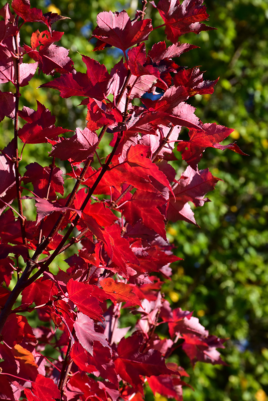 A very tall and narrowly upright tree, adds to the landscape skyline, also great for tall narrow hedges; features spectacular fiery red fall color, showy red flowers along the bare branches in spring