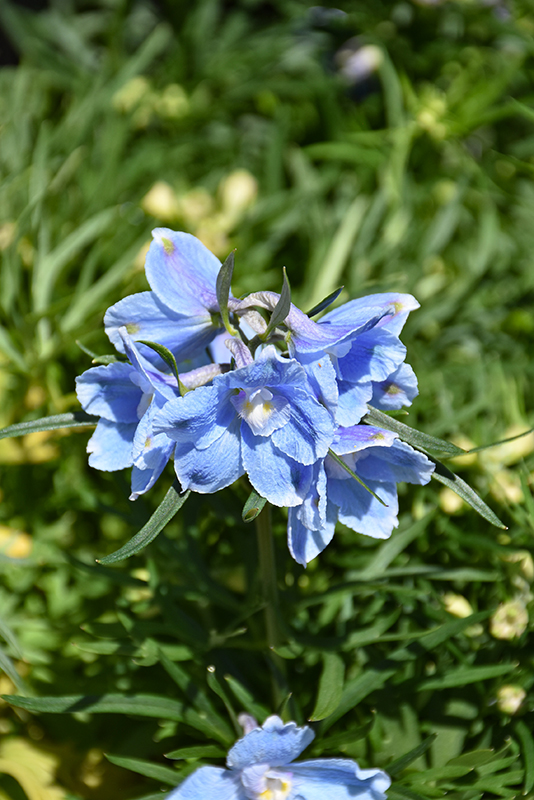 Hunky Dory&Trade; Sky Blue Delphinium has masses of beautiful panicles of sky blue flowers with white eyes at the ends of the stems from early summer to early fall, which are most effective when planted in groupings. The flowers are excellent for cutting. Its crinkled ferny compound leaves remain dark green in colour throughout the season.