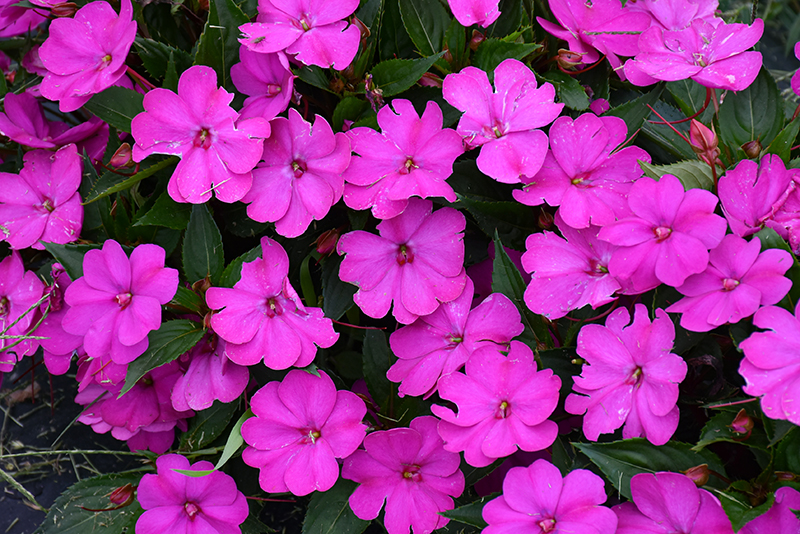 SunPatiens® Vigorous Purple New Guinea Impatiens is a dense herbaceous annual with a mounded form. Its medium texture blends into the garden, but can always be balanced by a couple of finer or coarser plants for an effective composition.