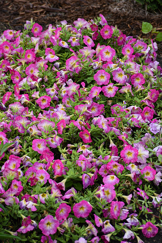 Capella™ Pink Morn Petunia will grow to be about 12 inches tall at maturity, with a spread of 16 inches. When grown in masses or used as a bedding plant, individual plants should be spaced approximately 12 inches apart. Its foliage tends to remain dense right to the ground, not requiring facer plants in front. This fast-growing annual will normally live for one full growing season, needing replacement the following year.