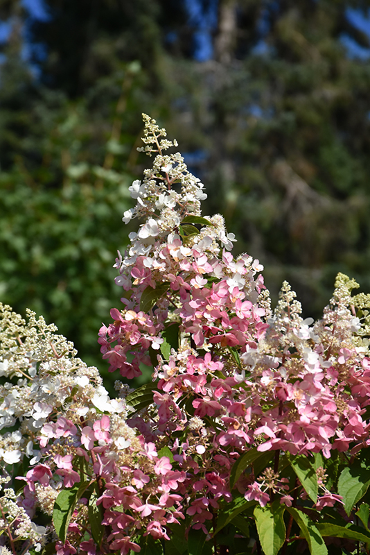 Candlelight® Hydrangea features bold conical white flowers with pink overtones at the ends of the branches from mid summer to late fall. The flowers are excellent for cutting. It has green deciduous foliage. The pointy leaves do not develop any appreciable fall colour. The smooth gray bark and dark red branches add an interesting dimension to the landscape.