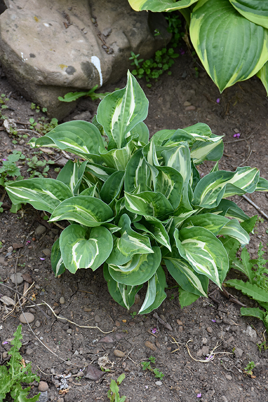 Snake Eyes Hosta will grow to be about 22 inches tall at maturity, with a spread of 4 feet. When grown in masses or used as a bedding plant, individual plants should be spaced approximately 20 inches apart. Its foliage tends to remain dense right to the ground, not requiring facer plants in front. It grows at a medium rate, and under ideal conditions can be expected to live for approximately 10 years. As an herbaceous perennial, this plant will usually die back to the crown each winter, and will regrow from the base each spring. Be careful not to disturb the crown in late winter when it may not be readily seen!
