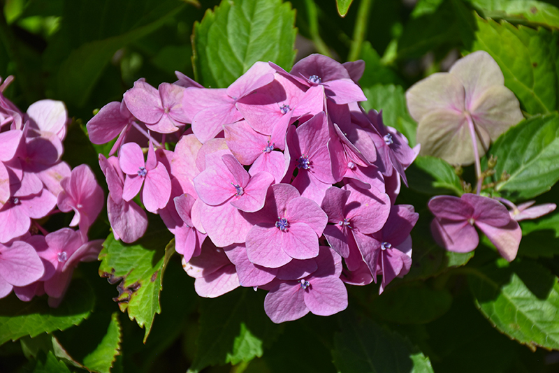 A compact mounded shrub that is just covered in bold, mophead flowers throughout the summer, complemented by large rich green leaves; blooms emerge green before developing pink with maturity; ideal for the shrub border or foundation garden