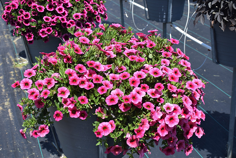 Callie® Strawberry Calibrachoa is a fine choice for the garden, but it is also a good selection for planting in outdoor containers and hanging baskets. Because of its trailing habit of growth, it is ideally suited for use as a 'spiller' in the 'spiller-thriller-filler' container combination; plant it near the edges where it can spill gracefully over the pot. Note that when growing plants in outdoor containers and baskets, they may require more frequent waterings than they would in the yard or garden.