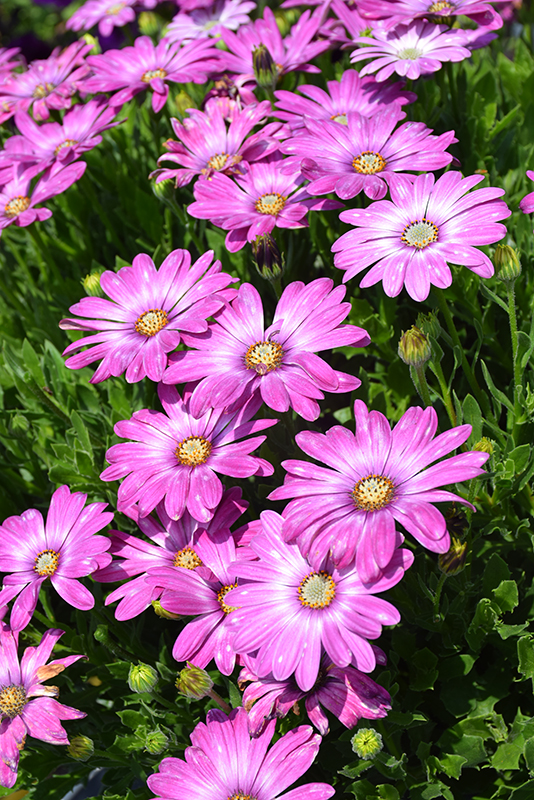 Zion™ Pink Orbit African Daisy will grow to be about 18 inches tall at maturity, with a spread of 24 inches. When grown in masses or used as a bedding plant, individual plants should be spaced approximately 18 inches apart. Its foliage tends to remain dense right to the ground, not requiring facer plants in front. Although it's not a true annual, this fast-growing plant can be expected to behave as an annual in our climate if left outdoors over the winter, usually needing replacement the following year. As such, gardeners should take into consideration that it will perform differently than it would in its native habitat.