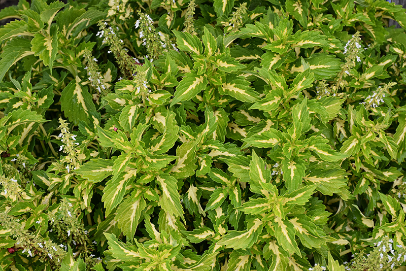 Down Town™ Port Fairy Coleus' attractive serrated narrow leaves remain light green in colour with prominent creamy white stripes and tinges of buttery yellow throughout the season on a plant with an upright spreading habit of growth.
