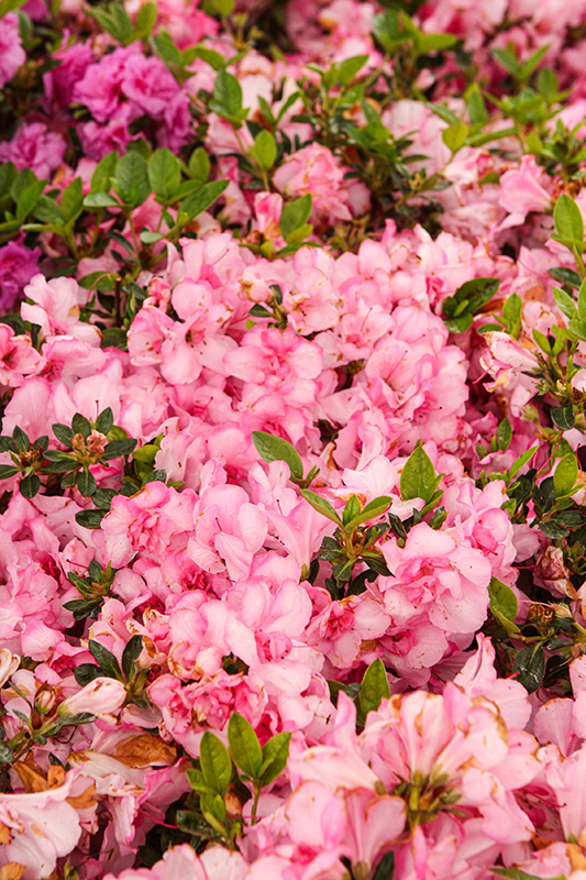 This stunning, compact evergreen shrub is bathed in clusters of beautiful bicolor pink flowers, and will bloom all season; an excellent choice to mass in groupings as a focal point of the garden; must have rich acidic soil