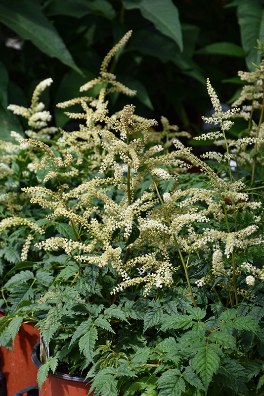 Goatee Goatsbeard features airy spikes of creamy white flowers at the ends of the stems from late spring to mid summer. The flowers are excellent for cutting. Its ferny compound leaves remain emerald green in colour throughout the season.