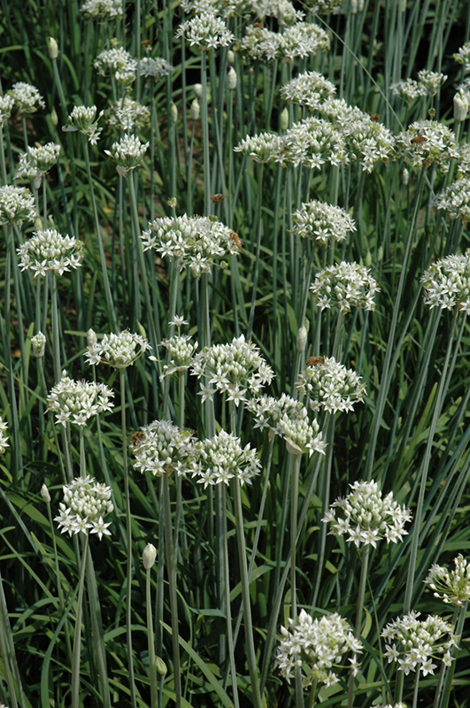 An edible ornamental with a sweet garlicky flavor; sets white globe flowers within first year, then by the second year, sets in both spring and fall; nectar rich and very attractive to bees and other pollinators; an excellent border plant and cut flower