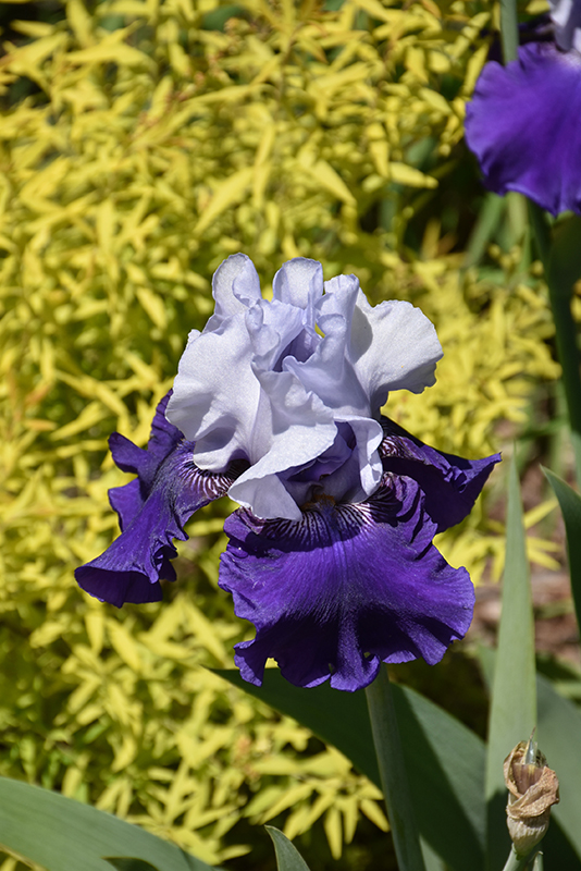 An outstanding reblooming iris, producing pale blue standards with contrasting deep dark blue falls; a stunning addition to the perennial border; also excellent massed in groupings in the garden; multiple, fragrant blooms per stalk
