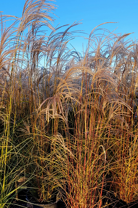 A lovely selection presenting attractive, airy plumes that emerge red in mid to late summer, then turn shiny silver-white in fall; graceful, arching green leaves with silver midribs turn shades of yellow in fall; provides wonderful winter interest