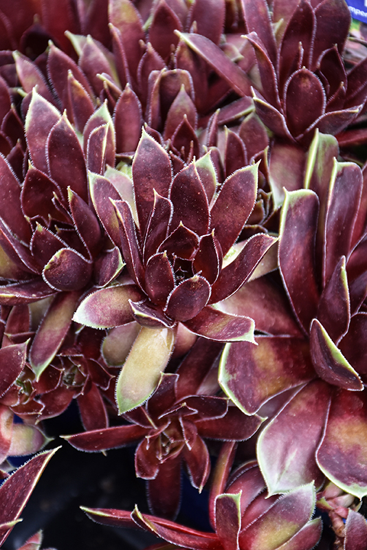 This variety is very hardy and drought tolerant; large rosettes with foliage that emerges lime-green and matures to a deep wine red with cream centers; dainty pink star flowers in summer; ideal for rock gardens and containers