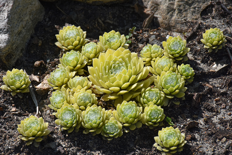 Colorockz® Lemon Flare Hens And Chicks will grow to be only 4 inches tall at maturity extending to 12 inches tall with the flowers, with a spread of 12 inches. When grown in masses or used as a bedding plant, individual plants should be spaced approximately 10 inches apart. Its foliage tends to remain low and dense right to the ground. It grows at a medium rate, and under ideal conditions can be expected to live for approximately 20 years. As an herbaceous perennial, this plant will usually die back to the crown each winter, and will regrow from the base each spring. Be careful not to disturb the crown in late winter when it may not be readily seen!