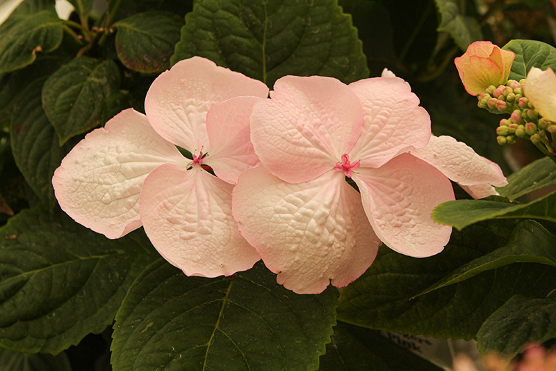 A beautiful compact shrub that features large soft pink lace cap flowers that bloom earlier and longer than other cultivars; lavender tones in acidic soils; dark green foliage with good fall color; a wonderful choice for the flower garden or border