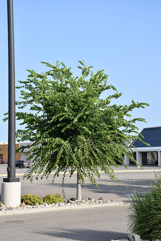 Prairie Expedition Elm will grow to be about 70 feet tall at maturity, with a spread of 60 feet. It has a high canopy of foliage that sits well above the ground, and should not be planted underneath power lines. As it matures, the lower branches of this tree can be strategically removed to create a high enough canopy to support unobstructed human traffic underneath. It grows at a fast rate, and under ideal conditions can be expected to live to a ripe old age of 100 years or more; think of this as a heritage tree for future generations!