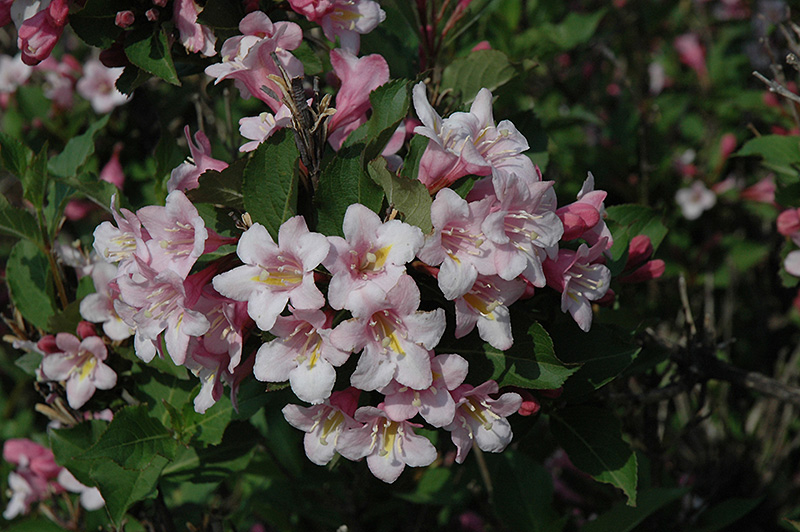 Samba Weigela is a multi-stemmed deciduous shrub with a more or less rounded form. Its average texture blends into the landscape, but can be balanced by one or two finer or coarser trees or shrubs for an effective composition.