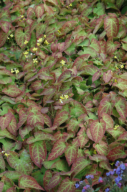 Froehnleiten Bishop's Hat's attractive heart-shaped leaves emerge red in spring, turning green in colour with distinctive red edges on a plant with a spreading habit of growth. As an added bonus, the foliage turns a gorgeous brick red in the fall. It features delicate nodding yellow star-shaped flowers rising above the foliage from mid to late spring.