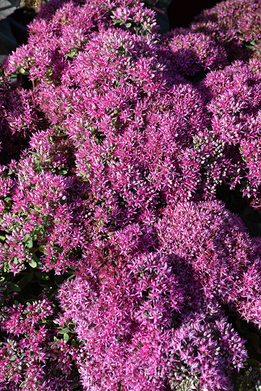 Mr. Goodbud Stonecrop has masses of beautiful clusters of fuchsia flowers at the ends of the stems from late summer to late fall, which emerge from distinctive purple flower buds, and which are most effective when planted in groupings. The flowers are excellent for cutting. Its attractive large succulent round leaves remain bluish-green in colour throughout the season. The dark red stems are very colorful and add to the overall interest of the plant.