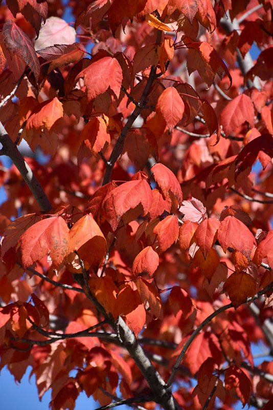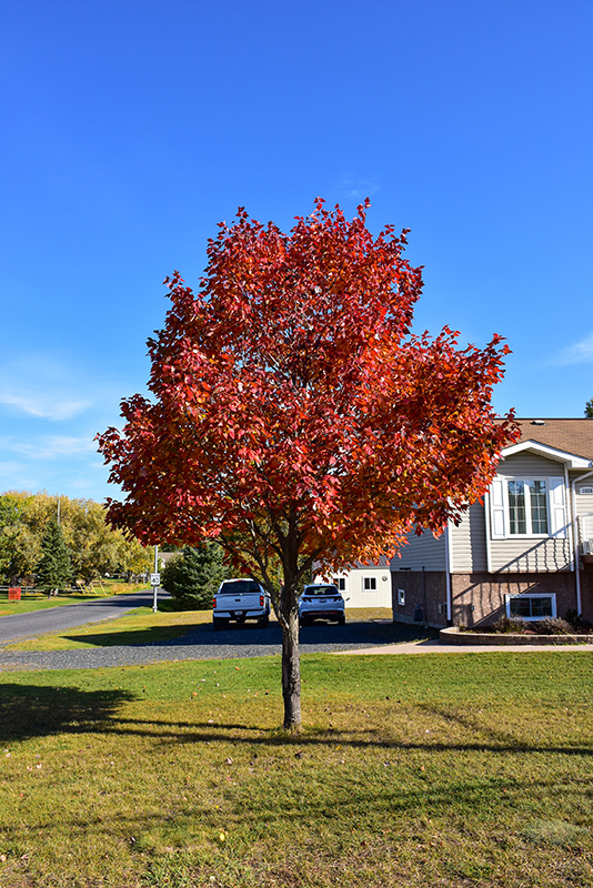 A very hardy selection of the popular red maple from northern Minnesota, this shapely shade tree features brilliant red fall color and showy red flowers along the branches in early spring; intolerant of alkaline soils