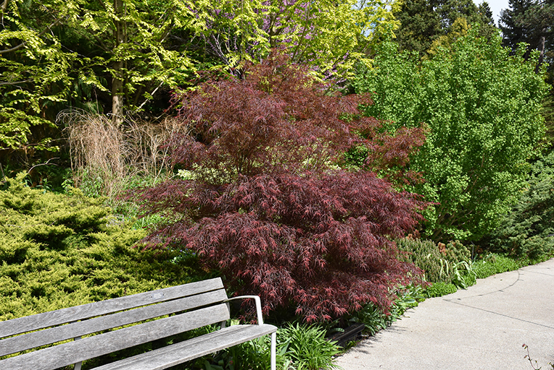 Dwarf Red Pygmy Japanese Maple is a dense deciduous tree with a strong central leader and a more or less rounded form. It lends an extremely fine and delicate texture to the landscape composition which can make it a great accent feature on this basis alone.