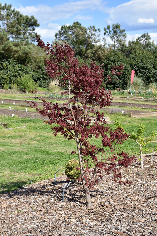 A vigorous tree with more upright habit and larger pointier leaves than others of this species; attractive burgundy foliage eventually fades to dark green throughout the summer; vibrant fall color; a shapely color accent for the garden