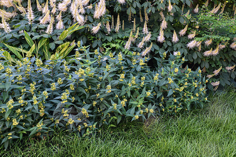 Butterfly Southern Bush Honeysuckle is primarily valued in the landscape or garden for its cascading habit of growth. It features subtle panicles of yellow trumpet-shaped flowers along the branches in early summer. It has attractive coppery-bronze-tipped dark green foliage which emerges coppery-bronze in spring. The glossy pointy leaves are highly ornamental but do not develop any appreciable fall colour.