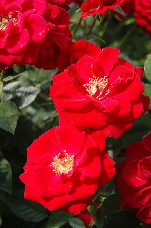 A lovely eye catching miniature producing clusters of velvety-red blooms that re-appear all season long; disease resistant foliage is a beautiful dark glossy green and provides excellent contrast; great for smaller garden areas and containers