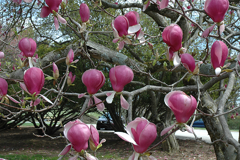 Lennei Saucer Magnolia will grow to be about 20 feet tall at maturity, with a spread of 20 feet. It has a low canopy with a typical clearance of 3 feet from the ground, and is suitable for planting under power lines. It grows at a medium rate, and under ideal conditions can be expected to live for 80 years or more.