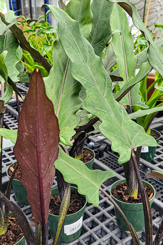 When grown indoors, Mythic™ Lauterbachiana Purple Sword Elephant Ears can be expected to grow to be about 24 inches tall at maturity, with a spread of 3 feet. It grows at a medium rate, and under ideal conditions can be expected to live for approximately 5 years. This houseplant should be situated in a location that that gets indirect sunlight at most, although it will usually require a more brightly-lit environment than what artificial indoor lighting alone can provide. It prefers to grow in average to moist soil. The surface of the soil shouldn't be allowed to dry out completely, and so you should expect to water this plant once and possibly even twice each week. Be aware that your particular watering schedule may vary depending on its location in the room, the pot size, plant size and other conditions; if in doubt, ask one of our experts in the store for advice. It will benefit from a regular feeding with a general-purpose fertilizer with every second or third watering. It is not particular as to soil pH, but grows best in rich soil. Contact the store for specific recommendations on pre-mixed potting soil for this plant. Be warned that parts of this plant are known to be toxic to humans and animals, so special care should be exercised if growing it around children and pets.