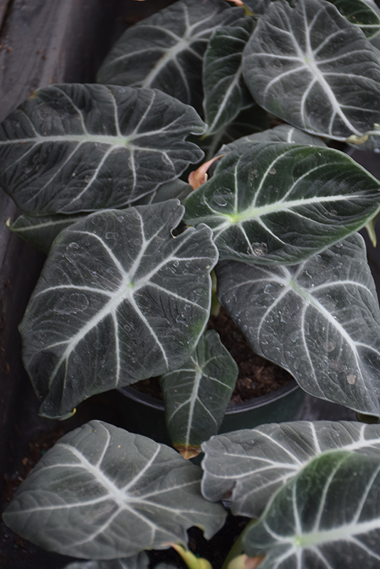 When grown indoors, Mythic™ Black Velvet Jewel Alocasia can be expected to grow to be about 18 inches tall at maturity, with a spread of 24 inches. It grows at a medium rate, and under ideal conditions can be expected to live for approximately 5 years. This houseplant should be situated in a location that that gets indirect sunlight at most, although it will usually require a more brightly-lit environment than what artificial indoor lighting alone can provide. It prefers to grow in average to moist soil. The surface of the soil shouldn't be allowed to dry out completely, and so you should expect to water this plant once and possibly even twice each week. Be aware that your particular watering schedule may vary depending on its location in the room, the pot size, plant size and other conditions; if in doubt, ask one of our experts in the store for advice. It will benefit from a regular feeding with a general-purpose fertilizer with every second or third watering. It is not particular as to soil type or pH; an average potting soil should work just fine. Be warned that parts of this plant are known to be toxic to humans and animals, so special care should be exercised if growing it around children and pets.