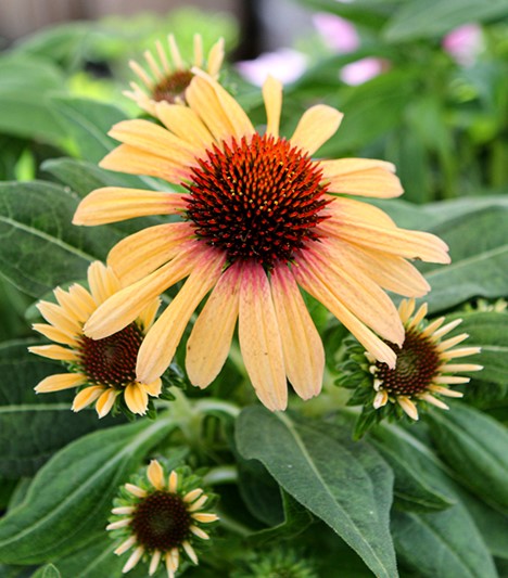 SunSeekers® Tequila Sunrise Coneflower is an herbaceous perennial with an upright spreading habit of growth. Its medium texture blends into the garden, but can always be balanced by a couple of finer or coarser plants for an effective composition.