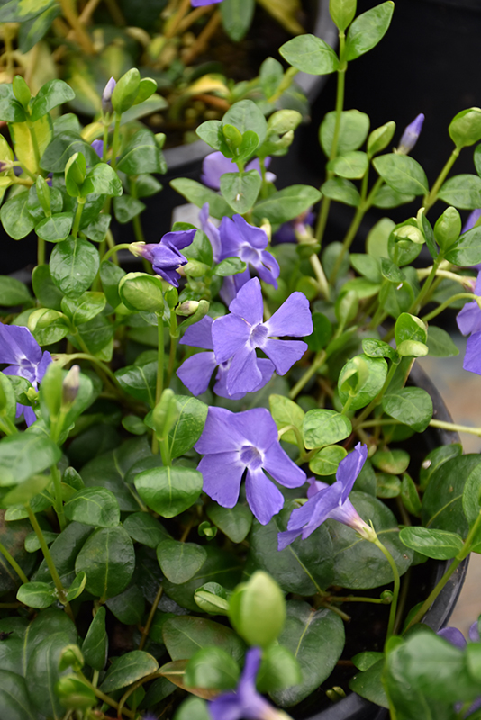 Bowles Cunningham Periwinkle is a fine choice for the garden, but it is also a good selection for planting in outdoor pots and containers. Because of its spreading habit of growth, it is ideally suited for use as a 'spiller' in the 'spiller-thriller-filler' container combination; plant it near the edges where it can spill gracefully over the pot. Note that when growing plants in outdoor containers and baskets, they may require more frequent waterings than they would in the yard or garden. Be aware that in our climate, most plants cannot be expected to survive the winter if left in containers outdoors, and this plant is no exception. Contact our experts for more information on how to protect it over the winter months.