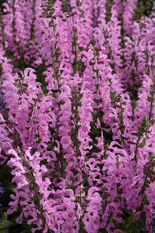 Fashionista® Moulin Rouge Sage has masses of beautiful racemes of fragrant pink tubular flowers with rose calyces rising above the foliage in late spring, which emerge from distinctive rose flower buds, and which are most effective when planted in groupings. The flowers are excellent for cutting. Its tomentose narrow leaves remain green in colour throughout the year.