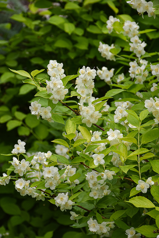 Golden Mockorange features showy clusters of fragrant white flowers with yellow eyes at the ends of the branches in late spring. It has attractive yellow deciduous foliage. The serrated oval leaves are highly ornamental but do not develop any appreciable fall colour.