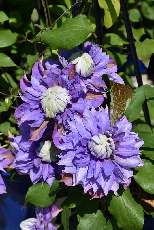 A beautiful and unusual vine with large fully double, round blooms of violet-blue; an early bloomer with a second flush in fall; great for covering fences or arbors