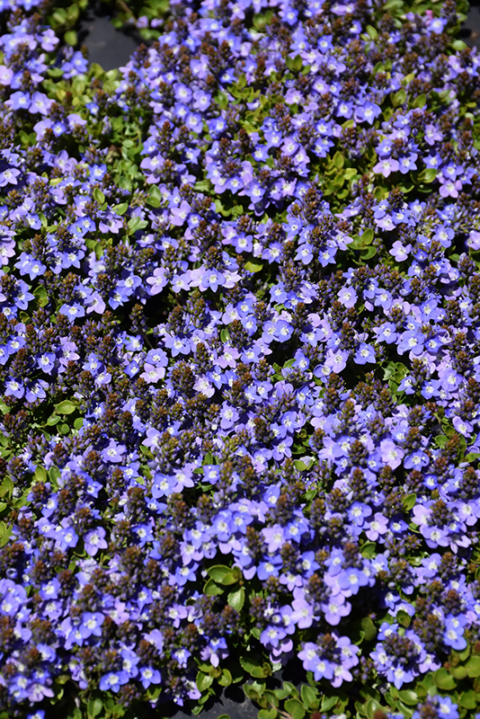 Tiny spikes of violet-blue flowers adorn low carpet-like mats of green foliage on this resilient plant, which can take some light foot traffic; a drought resistant groundcover selection, ideal in rock and alpine gardens, or as lawn replacement