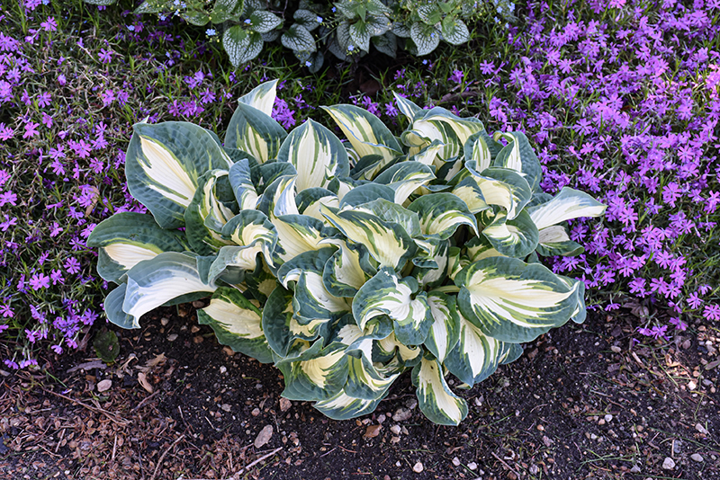 Hans Hosta will grow to be about 20 inches tall at maturity, with a spread of 32 inches. When grown in masses or used as a bedding plant, individual plants should be spaced approximately 28 inches apart. Its foliage tends to remain dense right to the ground, not requiring facer plants in front. It grows at a slow rate, and under ideal conditions can be expected to live for approximately 10 years. As an herbaceous perennial, this plant will usually die back to the crown each winter, and will regrow from the base each spring. Be careful not to disturb the crown in late winter when it may not be readily seen!