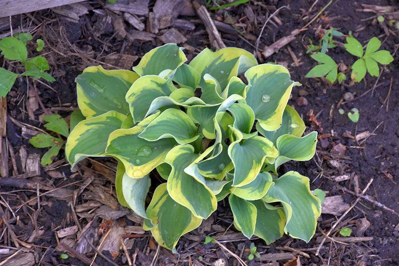 Mini Skirt Hosta will grow to be only 5 inches tall at maturity extending to 7 inches tall with the flowers, with a spread of 13 inches. When grown in masses or used as a bedding plant, individual plants should be spaced approximately 12 inches apart. Its foliage tends to remain low and dense right to the ground. It grows at a slow rate, and under ideal conditions can be expected to live for approximately 10 years. As an herbaceous perennial, this plant will usually die back to the crown each winter, and will regrow from the base each spring. Be careful not to disturb the crown in late winter when it may not be readily seen!