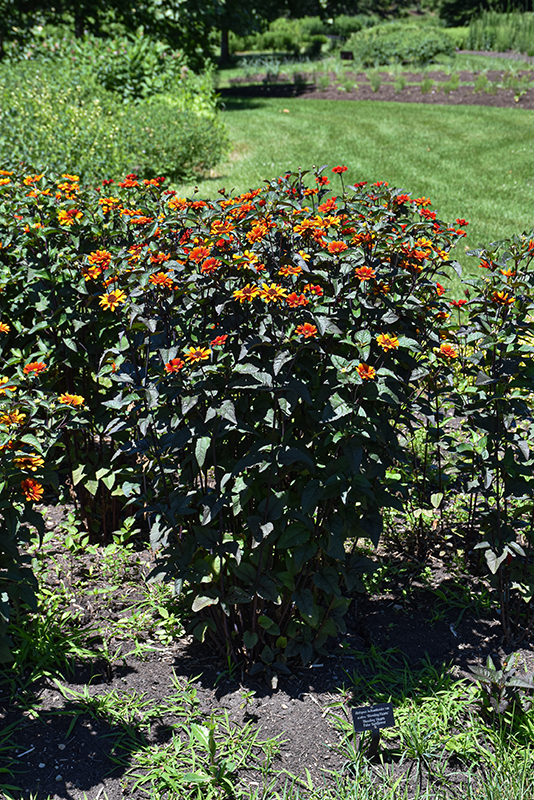 Bleeding Hearts False Sunflower has masses of beautiful red daisy flowers with orange overtones, brick red eyes and yellow tips at the ends of the stems from early summer to mid fall, which are most effective when planted in groupings. The flowers are excellent for cutting. Its serrated oval leaves emerge green in spring, turning dark green in colour with showy deep purple variegation throughout the season. The deep purple stems can be quite attractive.
