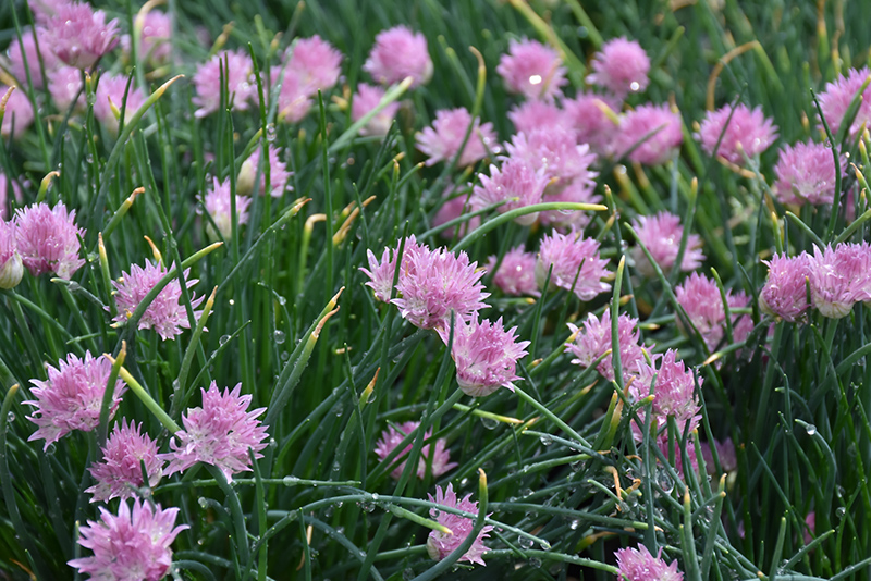 Rising Star Chives has masses of beautiful balls of lightly-scented pink flowers with lavender overtones at the ends of the stems from late spring to early summer, which are most effective when planted in groupings. Its attractive fragrant grassy leaves remain grayish green in colour throughout the season.