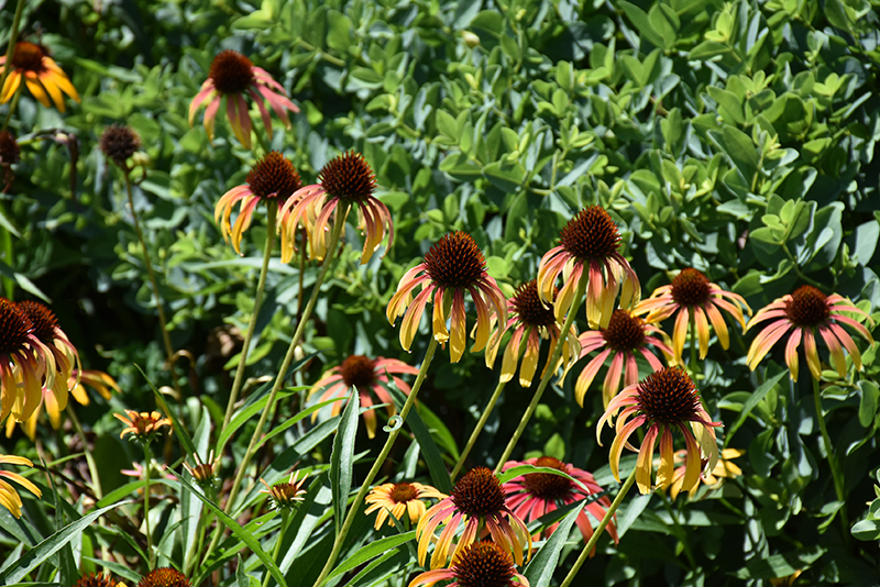 Fiery Meadow Mama Coneflower is a fine choice for the garden, but it is also a good selection for planting in outdoor pots and containers. With its upright habit of growth, it is best suited for use as a 'thriller' in the 'spiller-thriller-filler' container combination; plant it near the center of the pot, surrounded by smaller plants and those that spill over the edges. Note that when growing plants in outdoor containers and baskets, they may require more frequent waterings than they would in the yard or garden. Be aware that in our climate, most plants cannot be expected to survive the winter if left in containers outdoors, and this plant is no exception. Contact our experts for more information on how to protect it over the winter months.