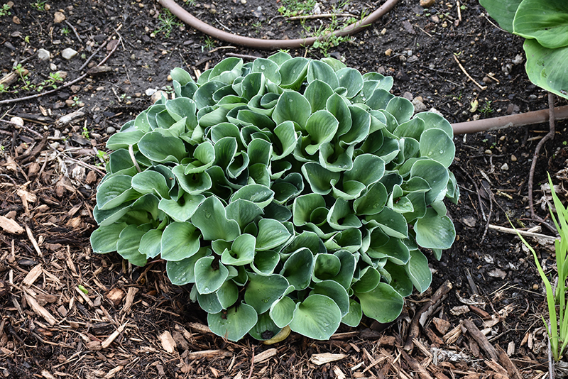 Blue Mouse Ears Hosta will grow to be only 4 inches tall at maturity extending to 10 inches tall with the flowers, with a spread of 12 inches. When grown in masses or used as a bedding plant, individual plants should be spaced approximately 10 inches apart. Its foliage tends to remain low and dense right to the ground. It grows at a slow rate, and under ideal conditions can be expected to live for approximately 10 years. As an herbaceous perennial, this plant will usually die back to the crown each winter, and will regrow from the base each spring. Be careful not to disturb the crown in late winter when it may not be readily seen!